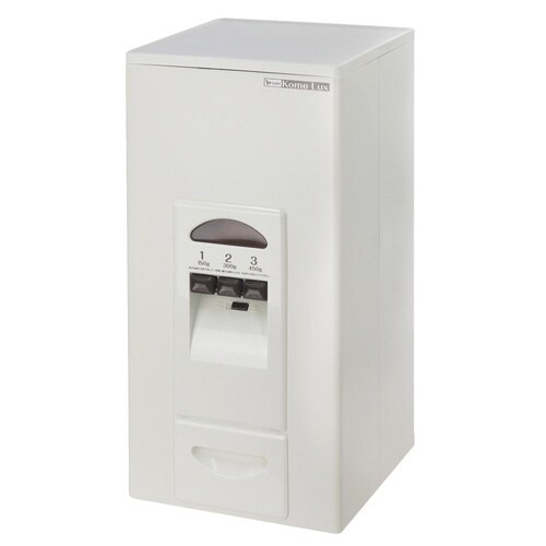 キッチンにすっきり置ける計量米びつです。 1合、2合、3合の3つのレバーで簡単に計量することができます。 お米の収納量が約23kgと大容量なので、一度にたくさん詰め替えられます。 |