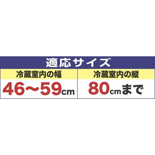 扉の開閉時に冷気を逃さないので、電気代節約に効果的です。 焼却時には有毒ガスがでない環境に配慮したアイテムです。 冷蔵室内の幅46から59cm、縦80cmまでの大きさに対応しています。 |