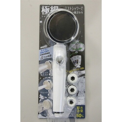 取付簡単な多機能シャワーヘッドです。 ワンタッチで3段階の水流切替が可能です。 ステンレス製散水板に0.35mmの極細穴で細かくお肌にやさしい水流を実現しました。 |