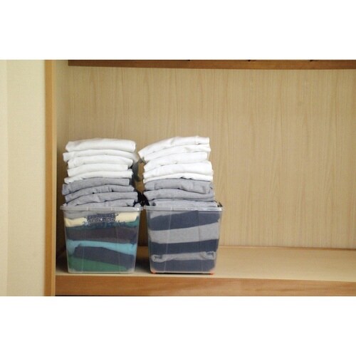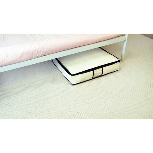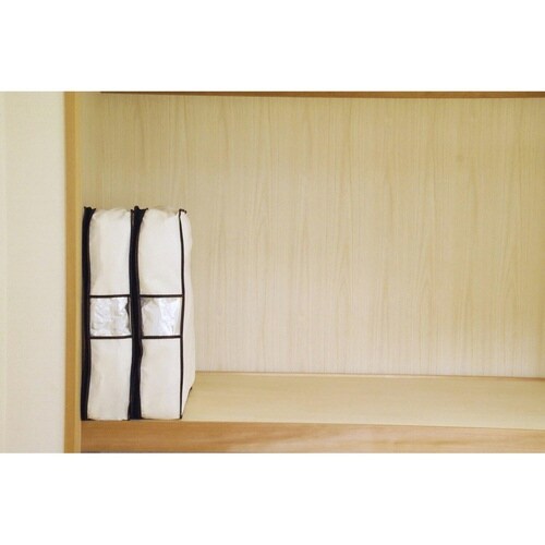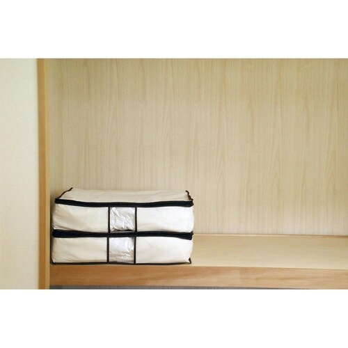 掃除機で圧縮袋の空気を抜き、圧縮してケースに入れるだけの簡単収納です。 ベッド下の収納にも最適です。 収納の目安は1枚につき、スウェット・セーター・ジャンパーなど15から20枚です。 |