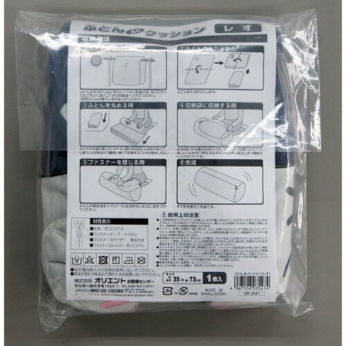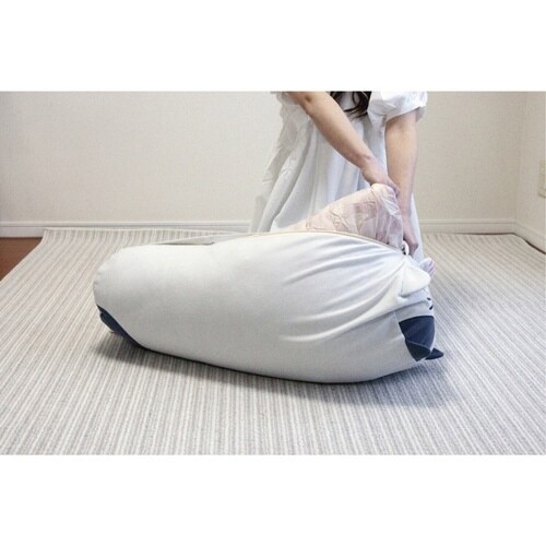 使わない布団を収納袋に巻いて入れるだけでクッションとして活用できます。 押入れのスペースを他の収納に使う事のできる便利グッズです。 円筒型だから場所を取りません。 収納袋は丸洗いできます。 |