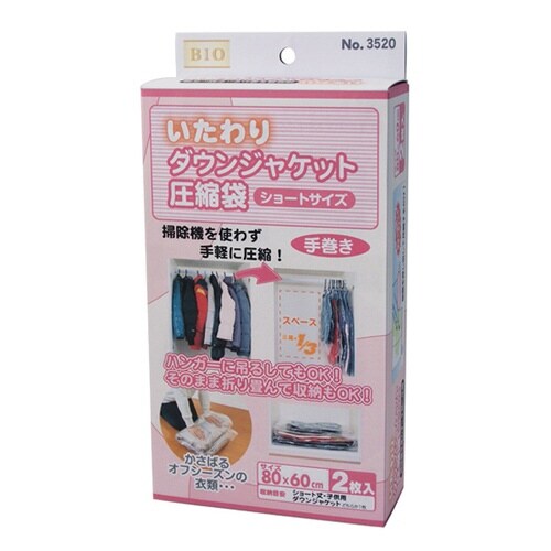 圧縮袋 衣類 手押し 手巻き 旅行 いたわりダウンジャケット ショート 吊るせる 旅行用 2枚入り