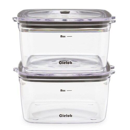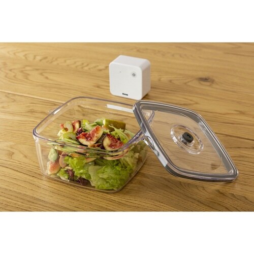 容器内を食材保管に最適な真空率に保てる、樹脂製保存容器1L(2個セット)です。 食材を入れて蓋をし、別売りのバキュームポンプをセットすると、ポンプが容器内を最適な真空率に調整します。 |