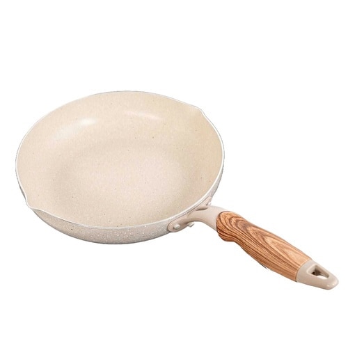 マーブルコーティングのフライパン28cmです。 熱まわりが良く美味しく仕上がるアルミ合金です。 IHに対応しています。 温かみのある木目調ハンドルです。 特殊4層フッ素樹脂加工でお手入れカンタンです。 |