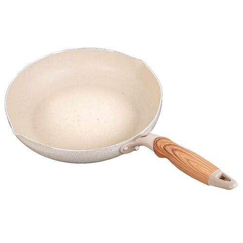 マーブルコーティングのフライパン26cmです。 熱まわりが良く美味しく仕上がるアルミ合金です。 IHに対応しています。 温かみのある木目調ハンドルです。 特殊4層フッ素樹脂加工でお手入れカンタンです。 |