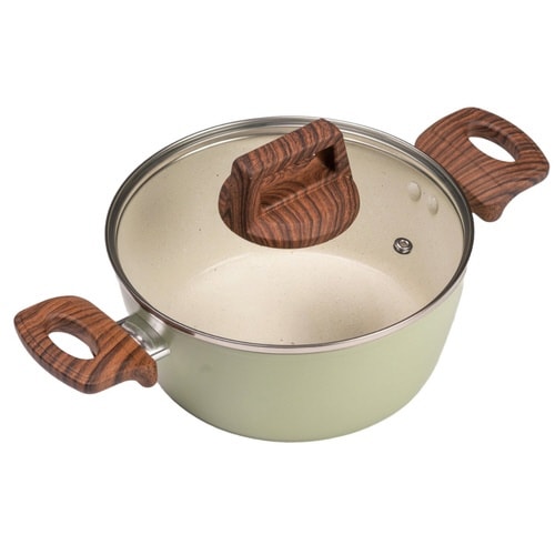 北欧テイストのキッチンに馴染むグリーンカラーの両手鍋です。 耐久性に優れた3層セラミックコーティングで食材がこびりつきにくく、汚れが落ちやすいです。 熱伝導が高いので中火以下での調理が可能です。 |