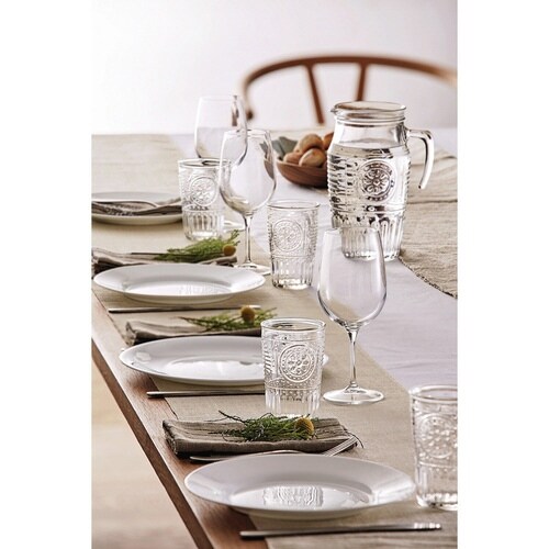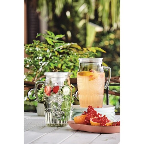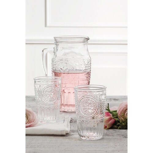 アンティーク風レリーフのピッチャーです。 容量は1.8Lで、1人から2人暮らしにちょうど良いサイズです。 手に馴染む厚手のガラス製です。 |