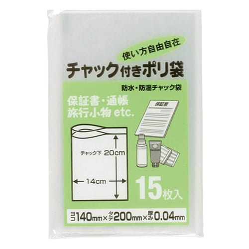 保存袋 チャック付きポリ袋 14×20cm 15枚入