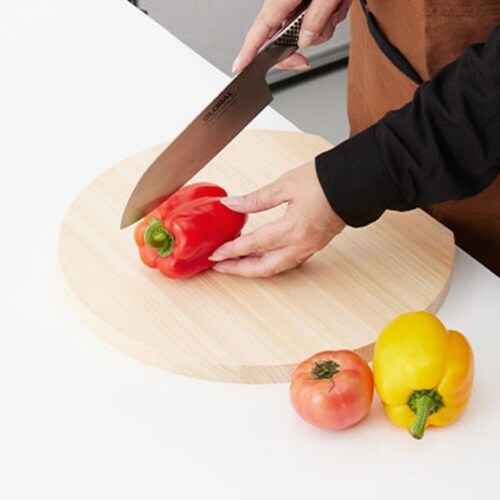 木目が美しい、温かみのあるひのきのまな板です。 適度な硬さで弾力があるので包丁が弾かれず、食材をきれいにカットできます。 D型なので切った食材を奥に置くことができ、スペースを無駄なく使えます。 |
