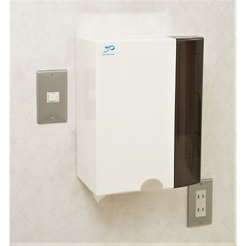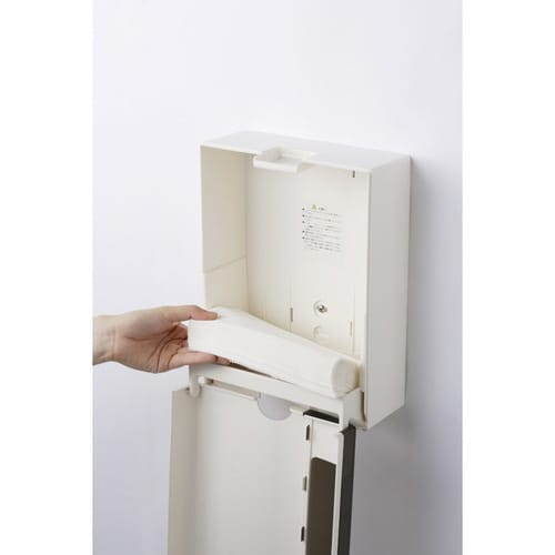 壁付けできるペーパータオルホルダーです。 ペーパータオルは約600枚収納することができます。 景観になじむ流線型の優しい形です。 残量がすぐわかる小窓付きです。 |