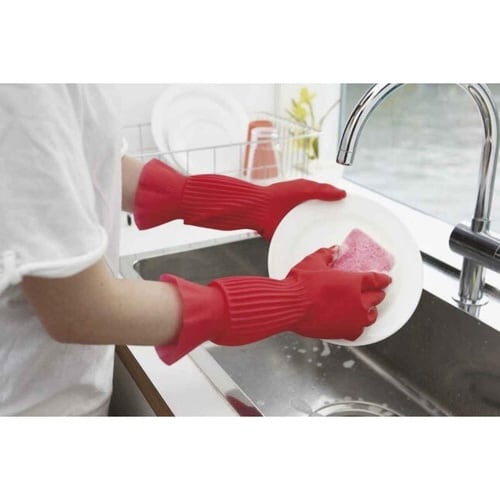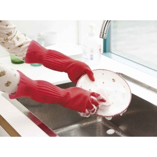 感覚のつかみやすい細い指先で着脱もし易いです。 気になる袖口も、絞ってあるのでズレにくいです。 スタイリッシュなキッチンに似合う、美しいギャザーのフォルムになってます。 |