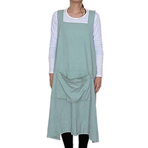 エプロン ポケット付き 無地 綿麻 ペールラップ グリーン×グレー