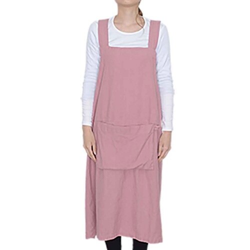 エプロン ポケット付き 無地 綿麻 ペールラップ ピンク