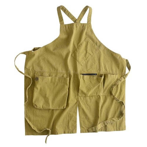 しっかりとした綿100%の生地でできた、シンプルなデザインのポケットエプロンです。 こだわりのつまった大小5つのポケットが付いているので、常に両手が使えて作業効率がアップします。 |