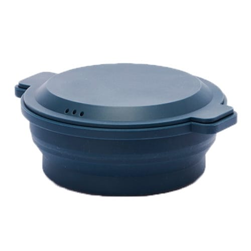 電子レンジ・オーブンで使える丸型シリコンスチーマーです。 蒸す・茹でる・煮るなどこれ1つで簡単に調理できます。 フタを裏返すと3つの仕切りがあります。 |