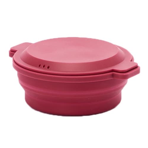 電子レンジ・オーブンで使える丸型シリコンスチーマーです。 蒸す・茹でる・煮るなどこれ1つで簡単に調理できます。 フタを裏返すと3つの仕切りがあります。 |