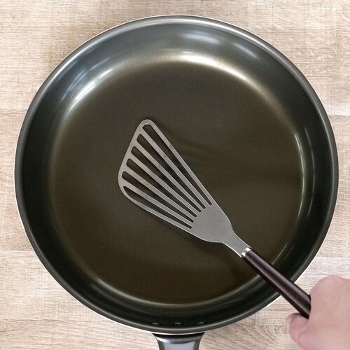 毎日使いたいなめらかな使い心地のフライパン30cmサイズです。 特殊なアルマイト加工によりコーティングがはがれにくくなっています。 熱変形しにくい底面で、食材に均一に火が通ります。 |