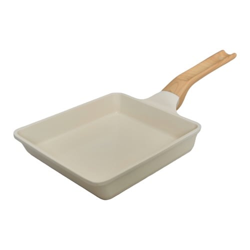 少量のおかずや卵3から4個分の卵焼き作りにぴったりな卵焼き器です。 ホワイトカラーにウッド調のハンドルを組み合わせたナチュラルなデザインで、キッチンをおしゃれに演出します。 |