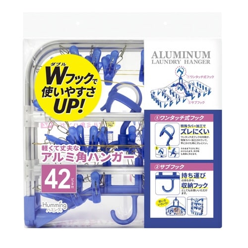 洗濯ハンガー アルミ角ハンガー ピンチ42個付