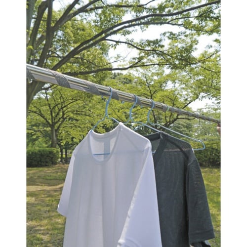干している洗濯物のハンガーが風で横滑りするのを軽減するテープです。 物干し竿にぐるぐる巻いて両端を固定するだけの簡単装着です。 約70mmの間隔を空けて巻くと、約20本のハンガーを掛けられます。 |