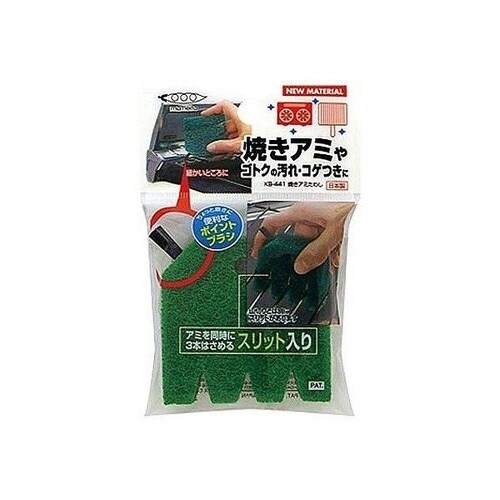 キッチンスポンジ 焼きアミたわし 焼き網用 ゴトク用 スリット入り ポイントブラシ付き