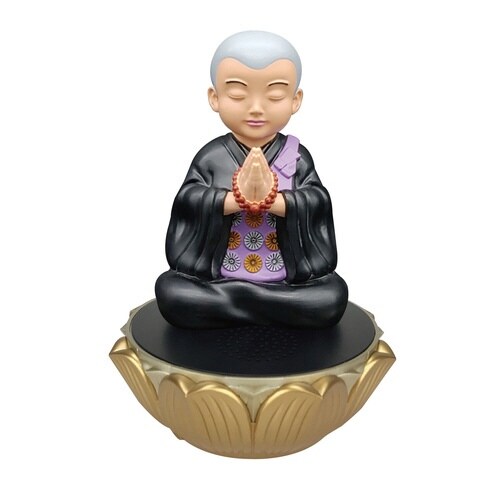 小さなお坊さんがお経を唱える小型プレイヤーです。 内蔵のマイクロSDカードに本物の僧侶が唱えたお経を収録しています。 シンプルなボタン再生で、ご高齢の方も簡単に操作しやすいです。 |