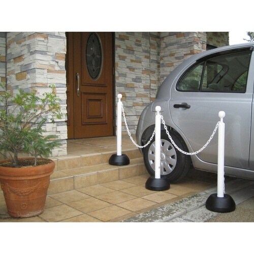 置くだけでいい便利なチェーンスタンドです。 駐車スペースの確保や無断侵入の防止などに便利です。 軽くて錆びないポリエチレン製なのでどこでも設置できます。 |