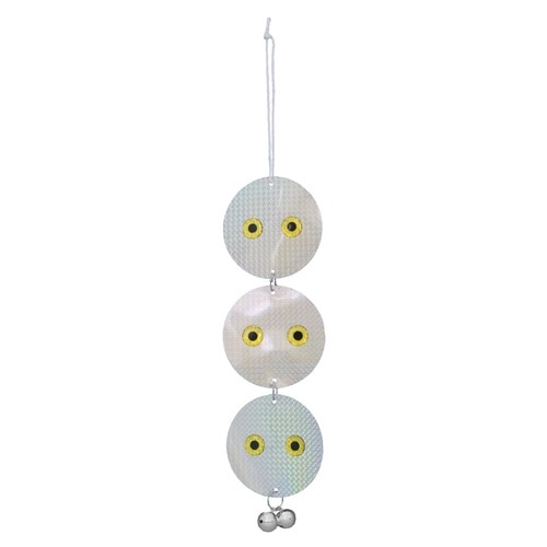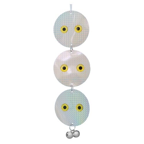 風の力でランダムに揺れてピカッと反射するホログラムで鳥を追い払います。 目玉の視覚効果で鳥を威嚇します。 ベランダや家庭菜園など、鳥害でお困りの場所に取り付けられます。 |