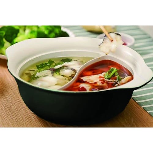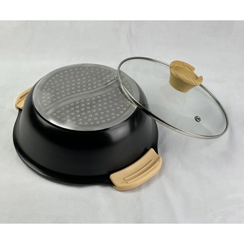 キムチ鍋ともつ鍋など、2つの味を同時に楽しめる仕切り鍋です。 一度に2品作れるので時短調理がかないます。 セラミック加工で汚れが落としやすくお手入れ簡単です。 |