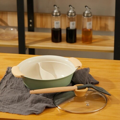 キムチ鍋ともつ鍋など、2つの味を同時に楽しめる仕切り鍋です。 一度に2品作れるので時短調理がかないます。 セラミック加工で汚れが落としやすくお手入れ簡単です。 |