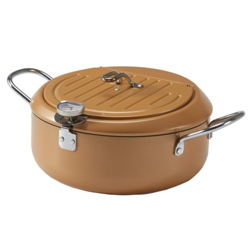 天ぷら鍋 24cm IH対応 鉄製 バット蓋付き 温度計付き ゴールド