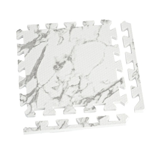 大理石柄フチ付きジョイントマット 9枚組です。 フチ付きで仕上がりが綺麗なのでラグのように使えます。 気になる生活音を軽減してくれます。 水に強い素材なのでキッチンや洗面所でも使用可能です。 |
