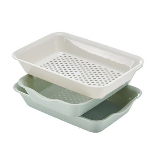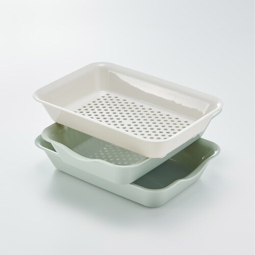 カットしたものを入れてスタッキング出来ます。 電子レンジ調理可能で時短クッキングになります。 バット2個&ザル1個の3点セットです。 |