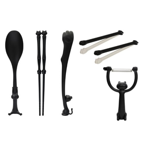 キッチンツール 5点セット フェリーチェ felice マルチスプーン トング ピーラー チョップスティック クリップ ネコ 猫 ブラック
