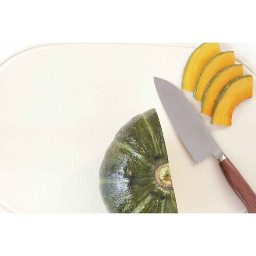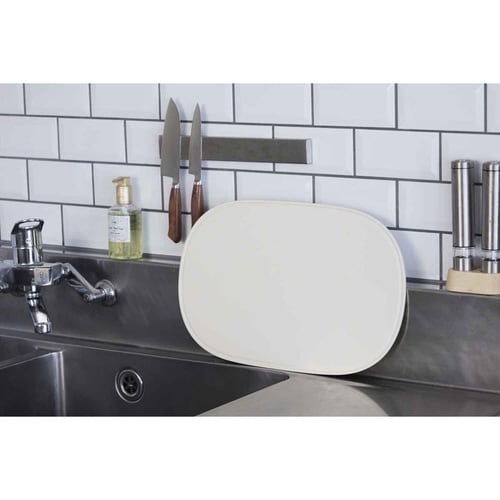 ほどよい弾力で快適な使い心地が魅力のエラストマーまな板Lサイズです。 オーバル型なのでスペースを広々使えます。 水分がこぼれにくい溝加工です。 安心して使える抗菌タイプです。 |