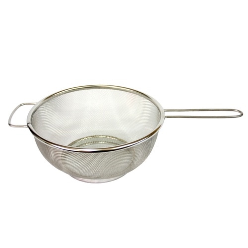 鍋にかけて使える25cmの片手ざるです。 スープ漉しや茹であげに便利な形状です。 底付で調理時にも安定します。 サビに強い18−8ステンレス製です。 |