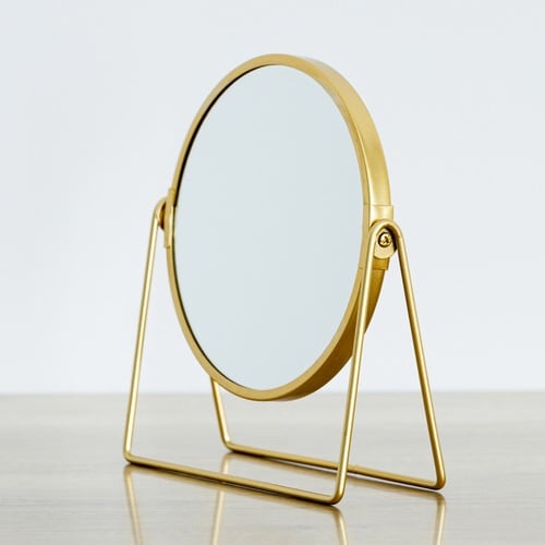 ゴールドのフレームが映えるインテリアミラー、LINO(ロータイプ)です。 置くだけで空間に華やかさをプラスしてくれます。 |