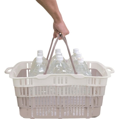 移動や収納に便利な折りたためるショッピングバスケットです。 ショッピングカートに乗せて使えます。 2Lのペットボトルを9本入れられる丈夫なつくりです。 持ち運びに便利なハンドルが付いています。 |