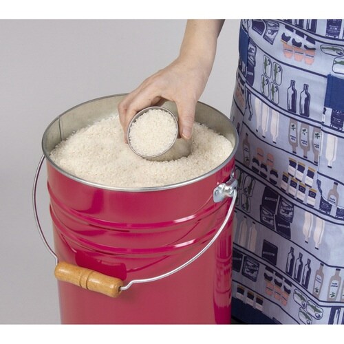 花柄模様のトタン素材、お米長持ち&インテリアに 清潔にお米を保存できる 便利な木製つまみ・木製取手付き コイン精米機でラクラク ペットフード入れにも最適 |