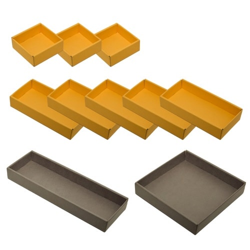 机の中の小物もトレイで簡単に整理整頓 ダンボール製「整理トレイ SHIKI」 様々な場所で活躍する整理トレイ 引き出しから出して、そのまま使えるトレイ オフィスの机整理に最適のサイズ |