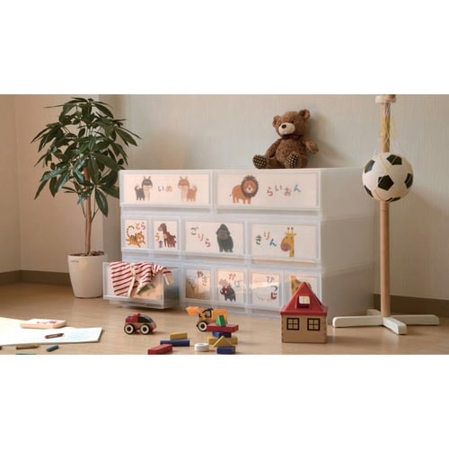 収納ケース「プラストPHシリーズ」です。 引き出し前面部に写真やイラストが入れられて自分の好きな模様にカスタマイズできる収納ケースです。 |