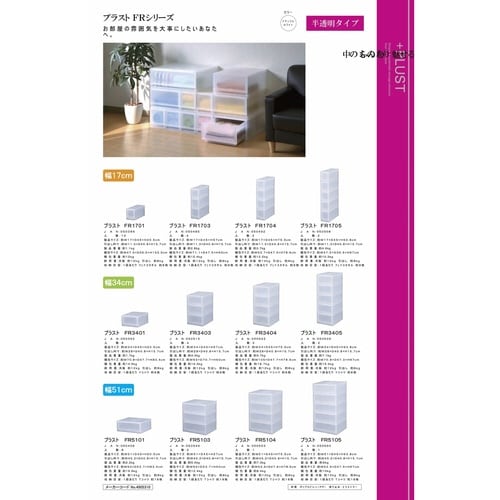 収納ケース「プラストFRシリーズ」です。 自由に積み重ねて自分ぴったりの収納ケースにカスタマイズできます。 半透明タイプで、お部屋の雰囲気を崩しません。