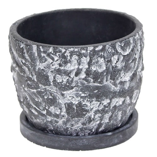 ゴツゴツとした岩のような無骨さがお洒落なポットです。 シンプルなデザインがグリーンや花木をより引き立てます。 ポットの底に穴が空いているので、たっぷりと水を与えられます。 |