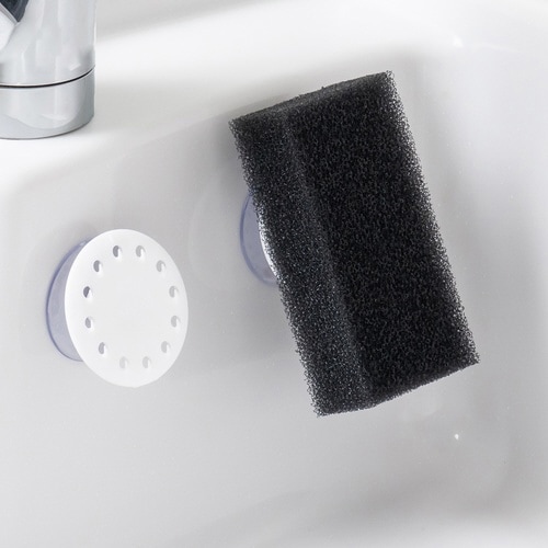 スポンジをツメに引っ掛けて浮かせて保管する、新タイプのスポンジホルダーです。接地面が少なく、斜め置きなので、水切れ抜群で衛生的です。スポンジを浮かせるので、水もたまらずお掃除もラクラクです。 |