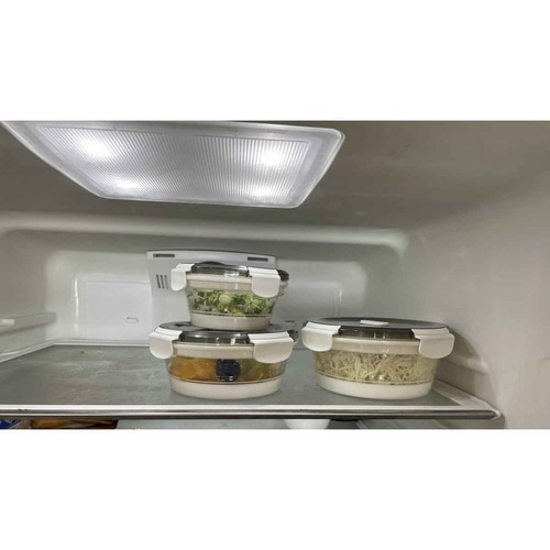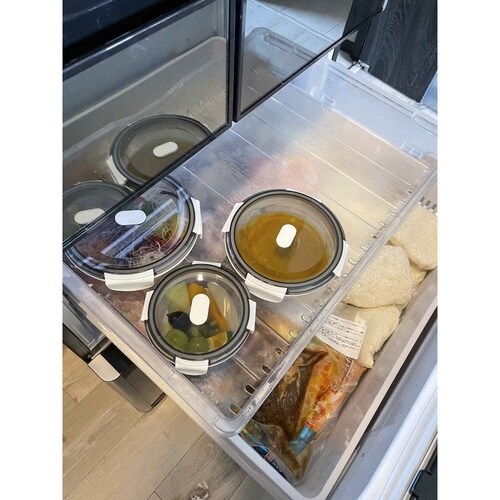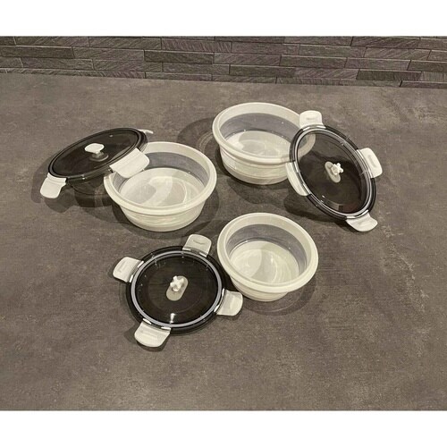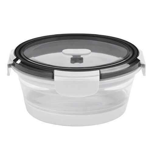 折りたためる保存容器、丸型1Lです。 透明シリコン素材で中の食材がよく見えます。 シンプルなデザインでそのまま食卓に出せます。 収納の際も省スペースです。 |