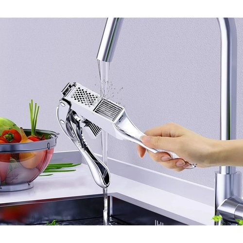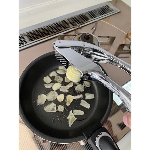 1本でニンニク、生姜のプレスとスライスができます。 丈夫で軽いアルミダイカスト製です。 使用後は丸洗いできるので衛生的です。 フックなどにかけて収納できます。 |