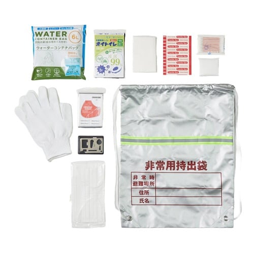 防災備蓄を始めるのに最適な、防災用品と非常用袋のセットです。 巾着型の持ち出し袋にまとめておくことで、緊急時も慌てず必要な防災用品を持ち出せます。 |
