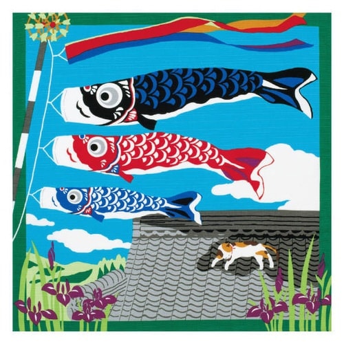 風呂敷 ランチクロス お弁当 50cm 中巾 三毛猫みけの夢日記 小ふろしき みけと鯉のぼり