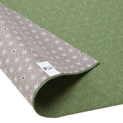 格調の高い鮫小紋と成長を願う麻葉の柄は、贈り物を包むのにぴったりな「両面ふろしき」です。 さざら織りは、表面の小さな凸凹が生地の高級感を演出します。 |