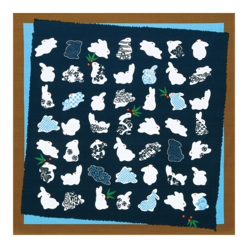様々な雪ウサギが描かれた風呂敷です。 お弁当やランチョンマットはもちろん、包み方次第でギフトを包んだりティッシュカバーとしてもお使いいただけます。 タペストリーとして飾っていただいても素敵です。 |